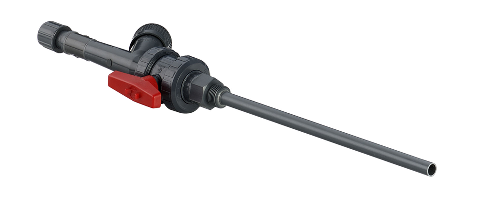 Para um resultado de dosagem perfeito, os acessórios de injeção são utilizados para injetar o produto químico fornecido pela bomba doseadora no sistema a ser tratado. O tubo de injeção permite que o produto químico doseador seja injetado no centro do sistema de tubagem, para garantir uma mistura uniforme.